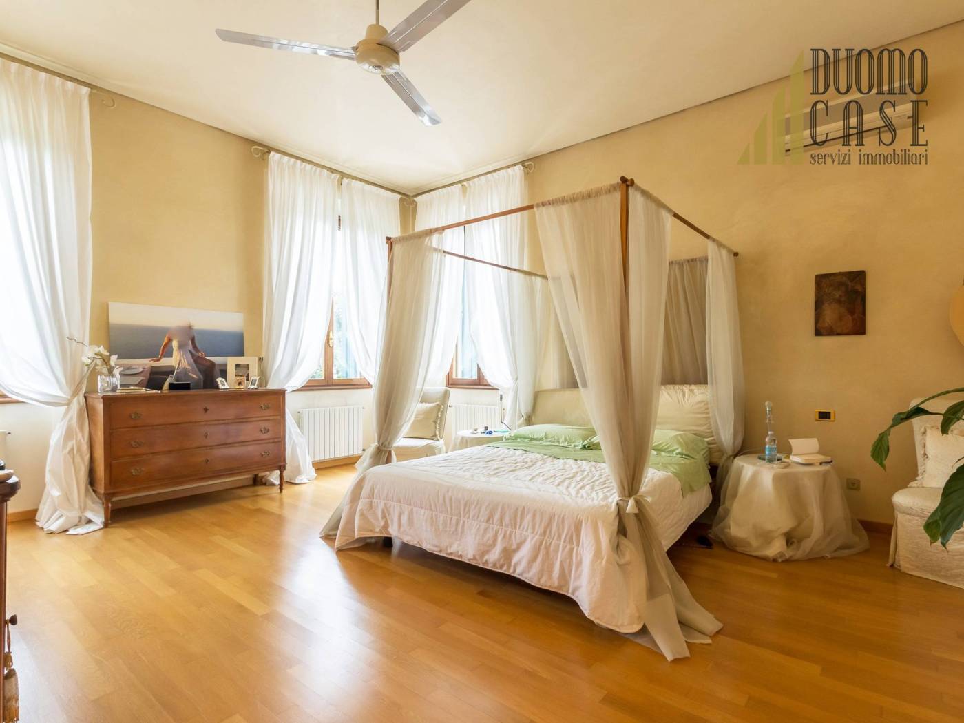 Un'elegante e comoda scala centrale conduce al 2° piano con ampio disimpegno che immette nella zona notte in cui troviamo 3 spaziose camere matrimoniali con 3 bagni en-suite e grande locale guardaroba, ripostiglio. Il pavimento delle camere da letto e è in parquet di legno massello. Al 3° ed ultimo piano mansardato con travi a vista troviamo 3 ampi locali con bagno.