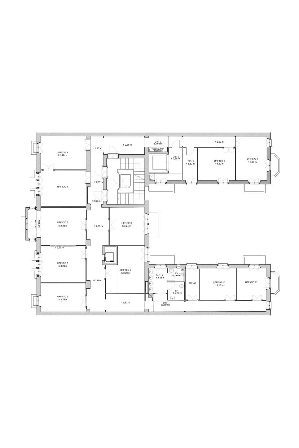 L'ufficio ha un ampio ingresso è suddiviso in 10 locali, due servizi zona break, balconi.