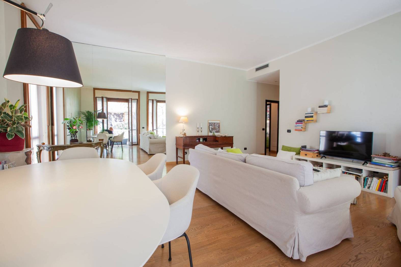 Tutte le stanze hanno grandi finestre e porte finestre che proiettano in tutta la casa molta luce. Pavimenti in parquet chiaro, infissi e finestre in buono stato.